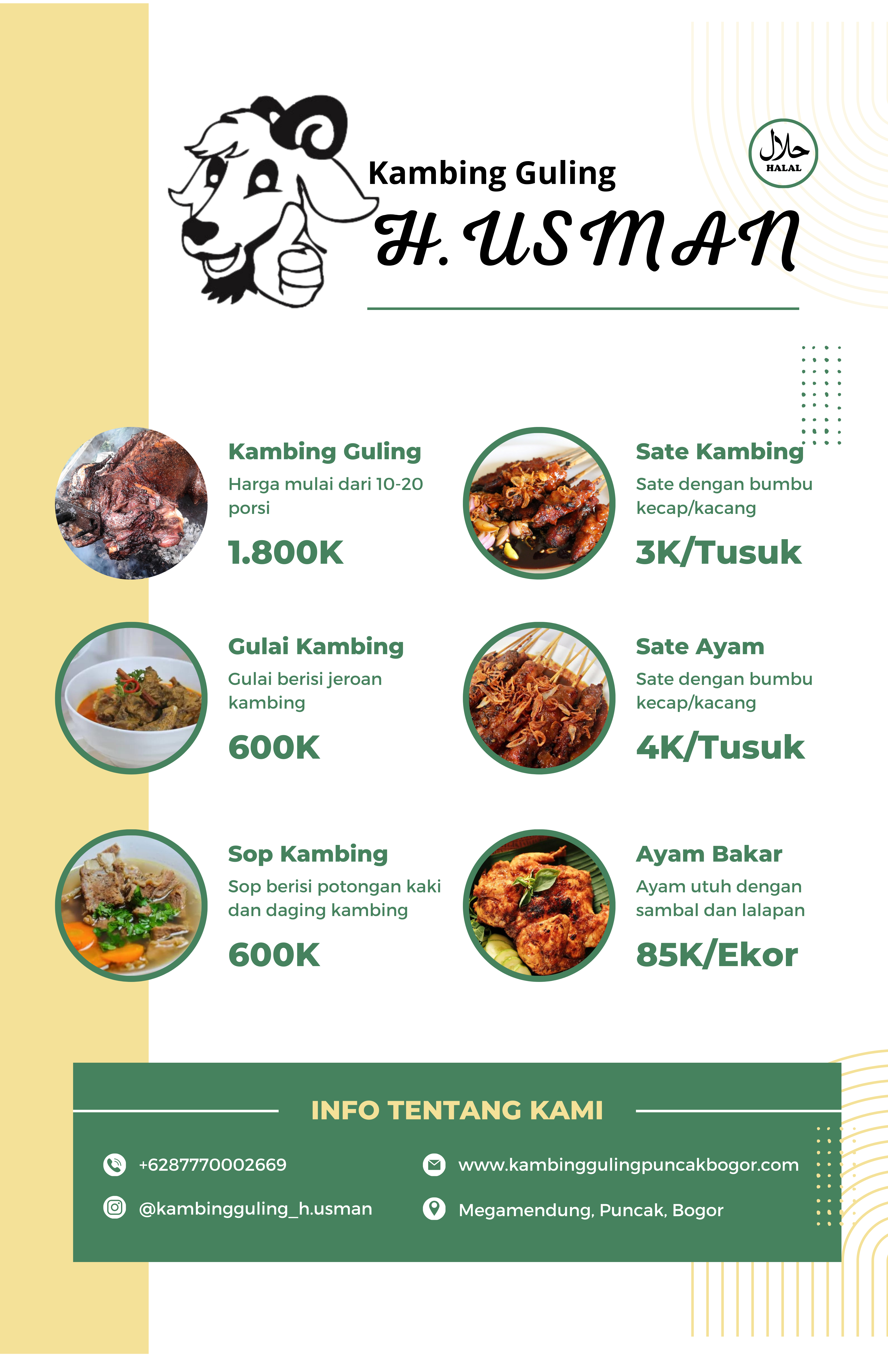 "Rasanya enak dan dagingnya super empuk. Bumbunya pas dan pelayanannya juga baguss. Terima kasih kambing guling h.usman🙌🏻."